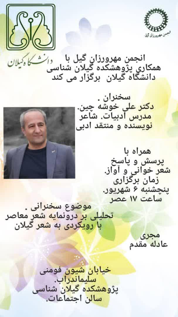 موضوع سخنرانی: تحلیلی بر درونمایه شعر معاصر با رویکردی به شعر گیلان