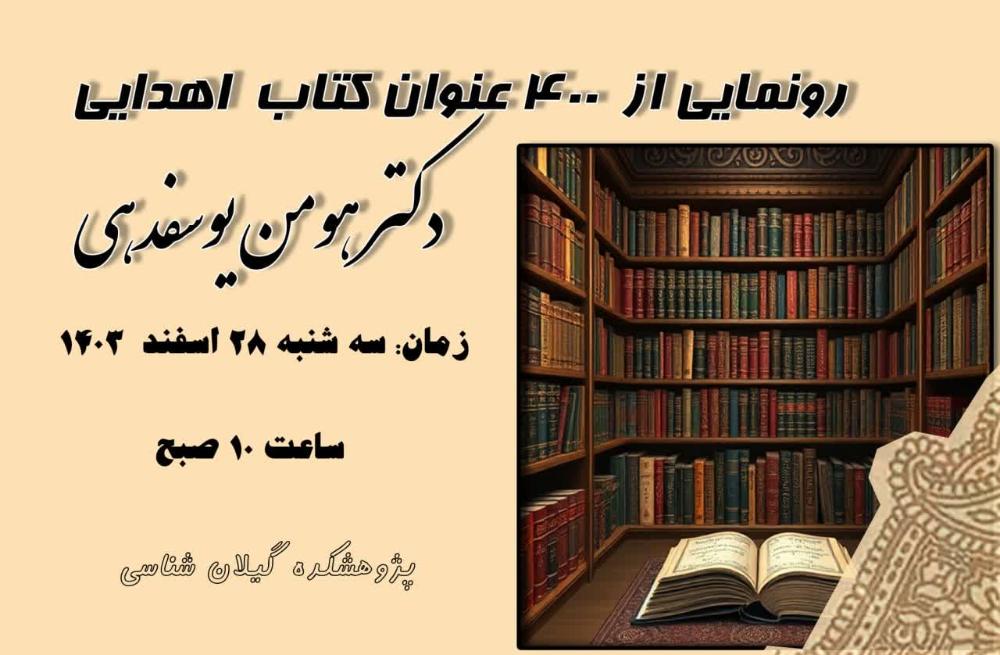 رونمایی از 400 عنوان کتاب اهدایی دکتر هومن یوسفدهی به کتابخانه پژوهشکده گیلان‌شناسی